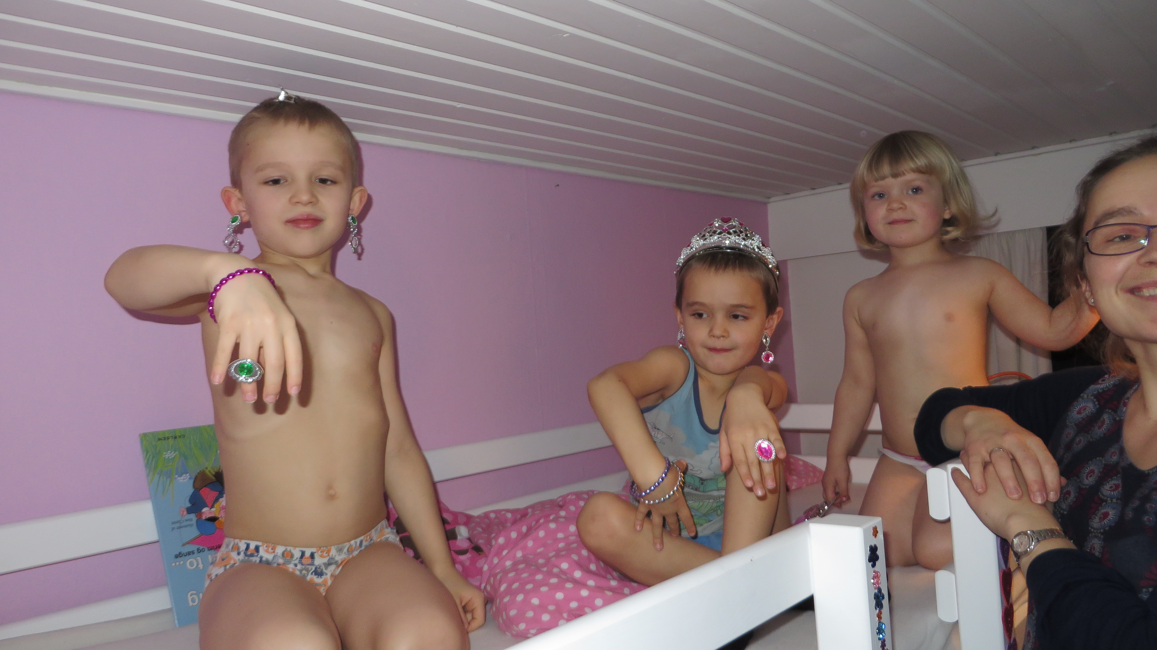 Lidt senere samme aften hygger mine 4 piger sig i Lauras seng (undskyld drenge!).Billedet er taget Thursday, December 26, 2013 10:26 PM.