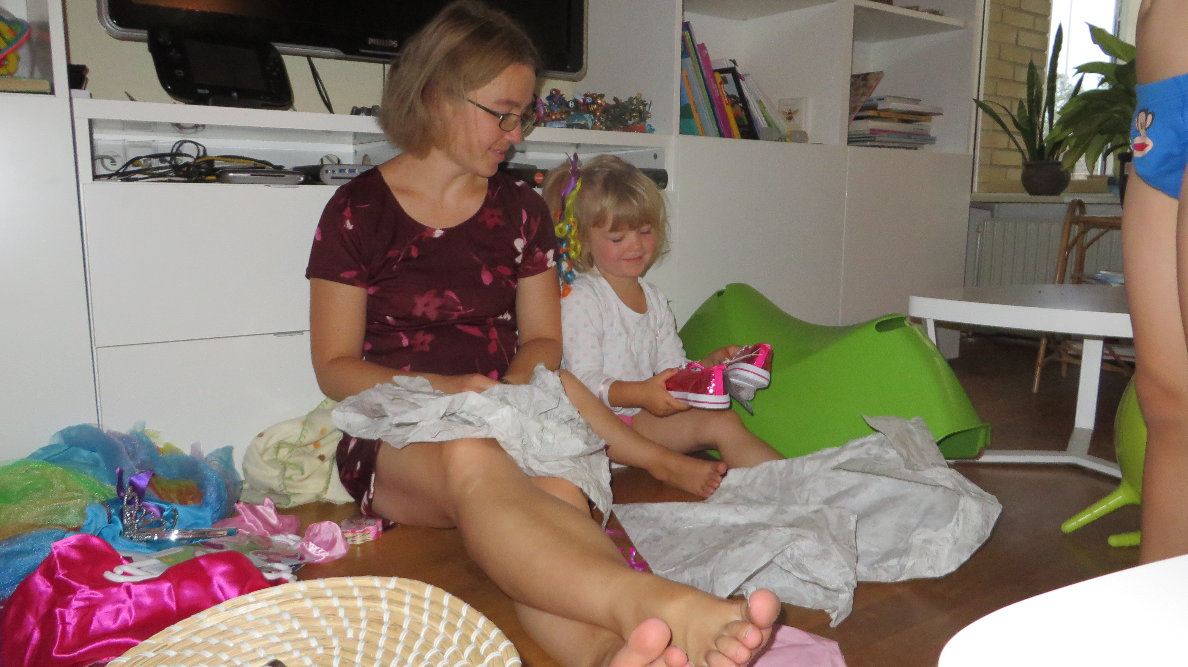 ...flere kjoler og sko. Skoene er fra onkel Claus og Henriette der har overnattet med mig på værelset.Billedet er taget Sunday, September 7, 2014 7:43 AM.