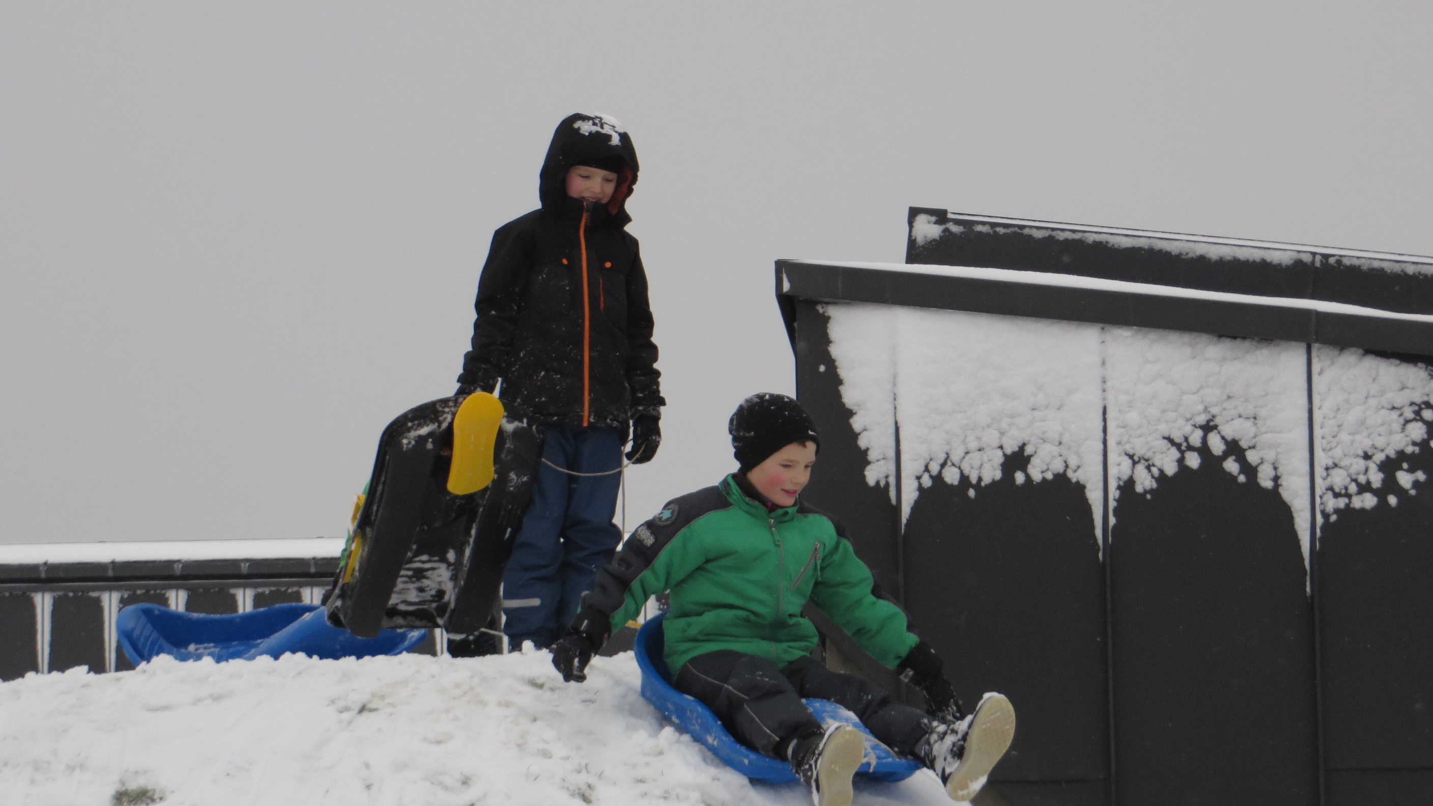 Her er vi på kælkebakken med Christian E og Jakob, men mor og Laura er til gymnastik.Billedet er taget Saturday, January 24, 2015 12:24 PM.