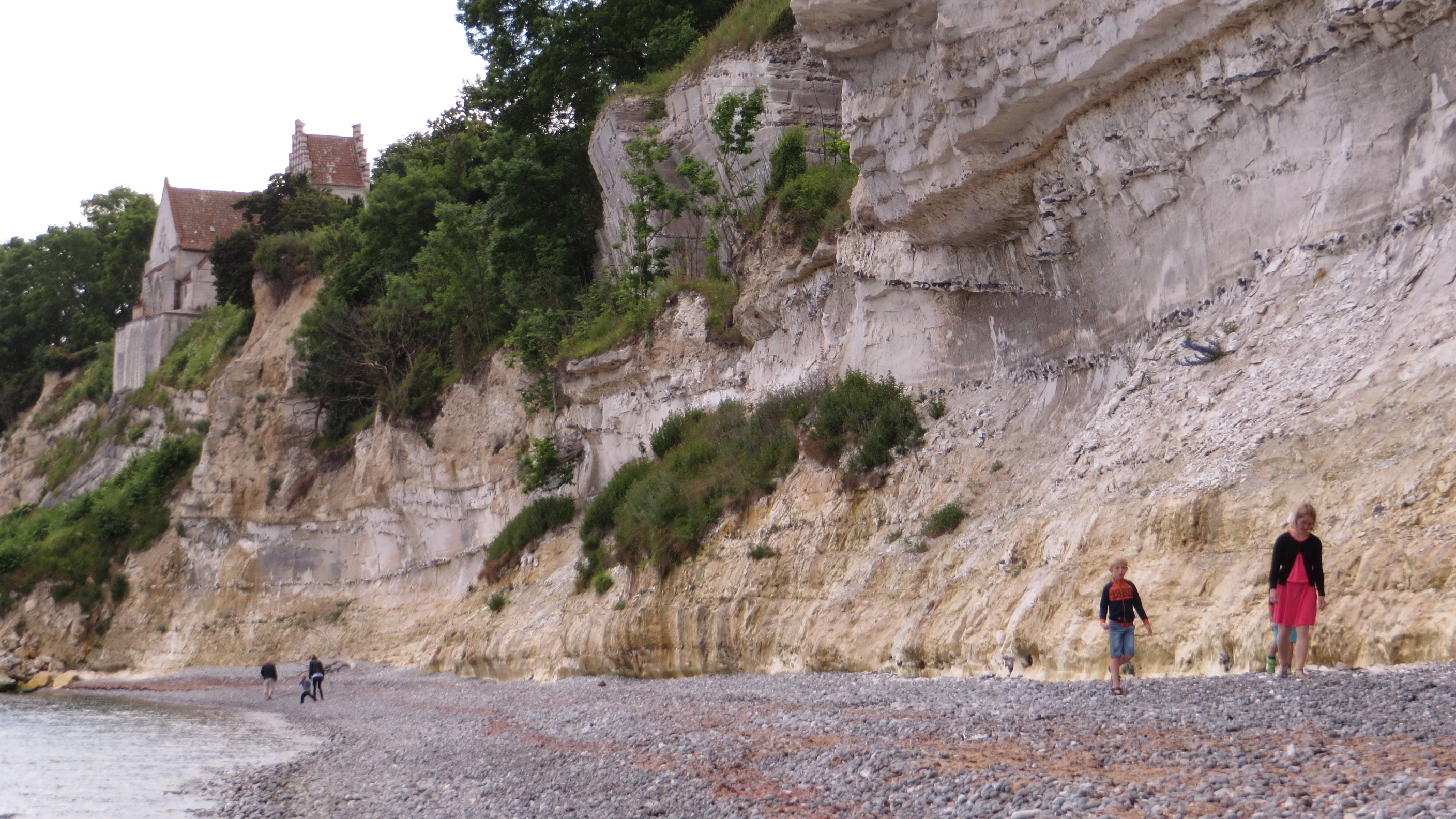 Her går vi og leder efter fosiler ved Stevns Klint. Prøv lige at se hvor tæt kirken er ved kanten af klinten.Billedet er taget Monday, July 6, 2015 4:47 PM.