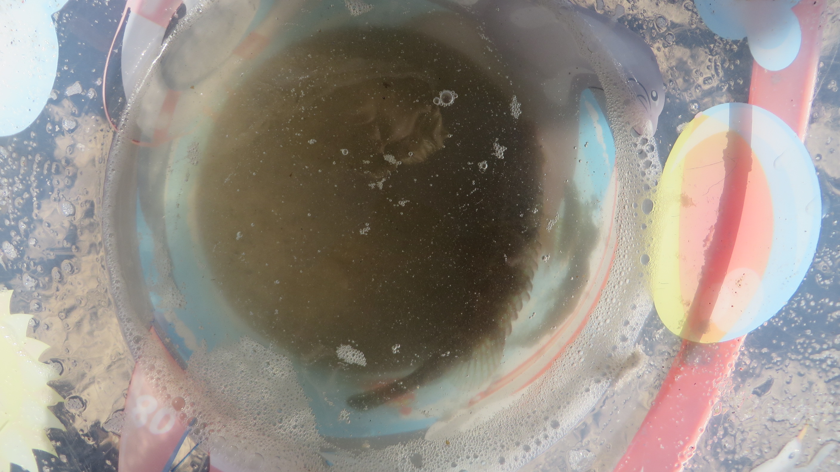 En lille fisk fanget af en fisker, der åbenbart syntes den var for lille, så den fik vi. Da vi ahvde set og rørt ved den slap vi den fri igen.Billedet er taget Sunday, September 27, 2015 11:45 AM.