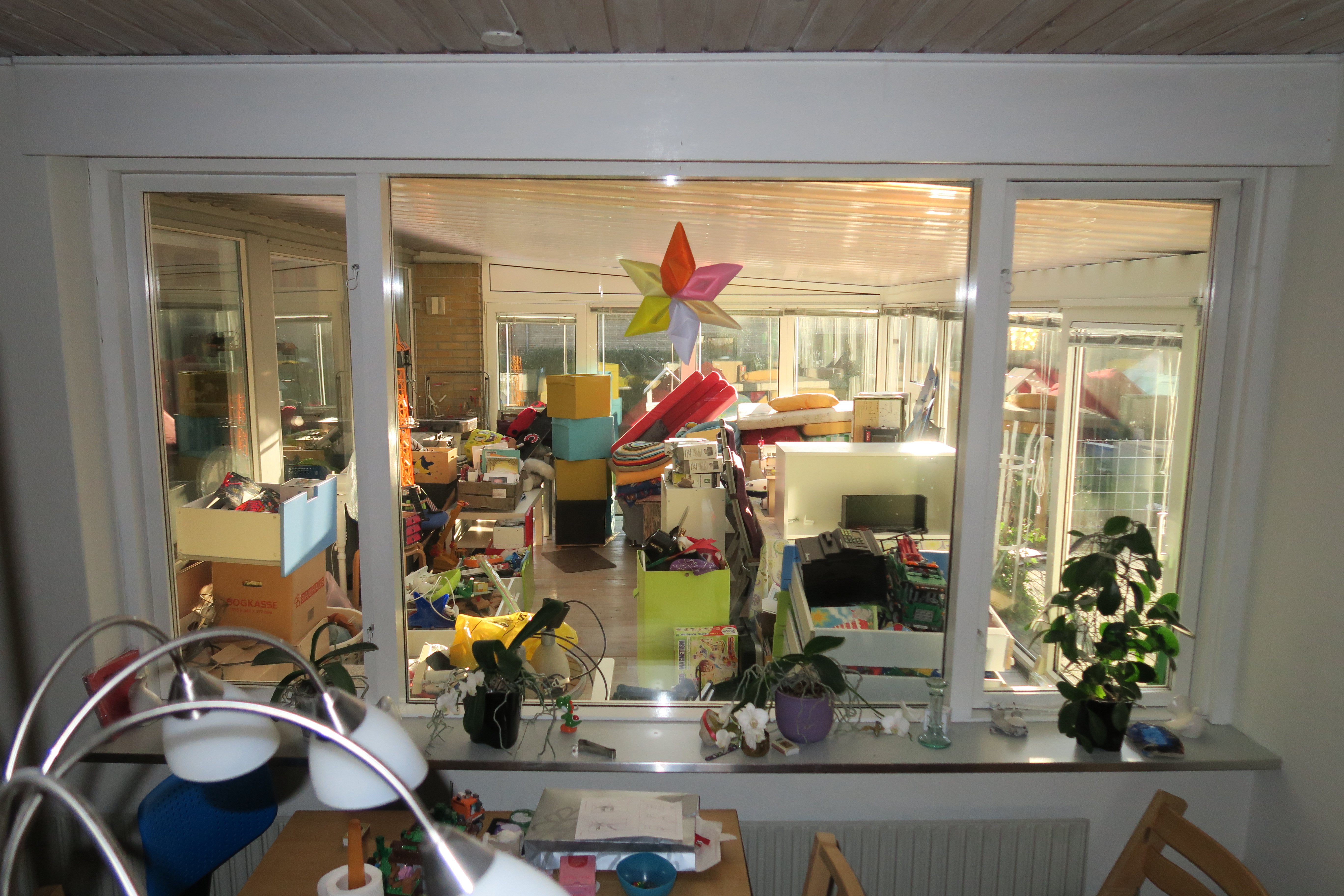 Udestuen er stuvet til med ting vi er vokset fra eller der ikke lige umiddelbart var et sted til.Billedet er taget Sunday, January 3, 2016 1:28 PM.
