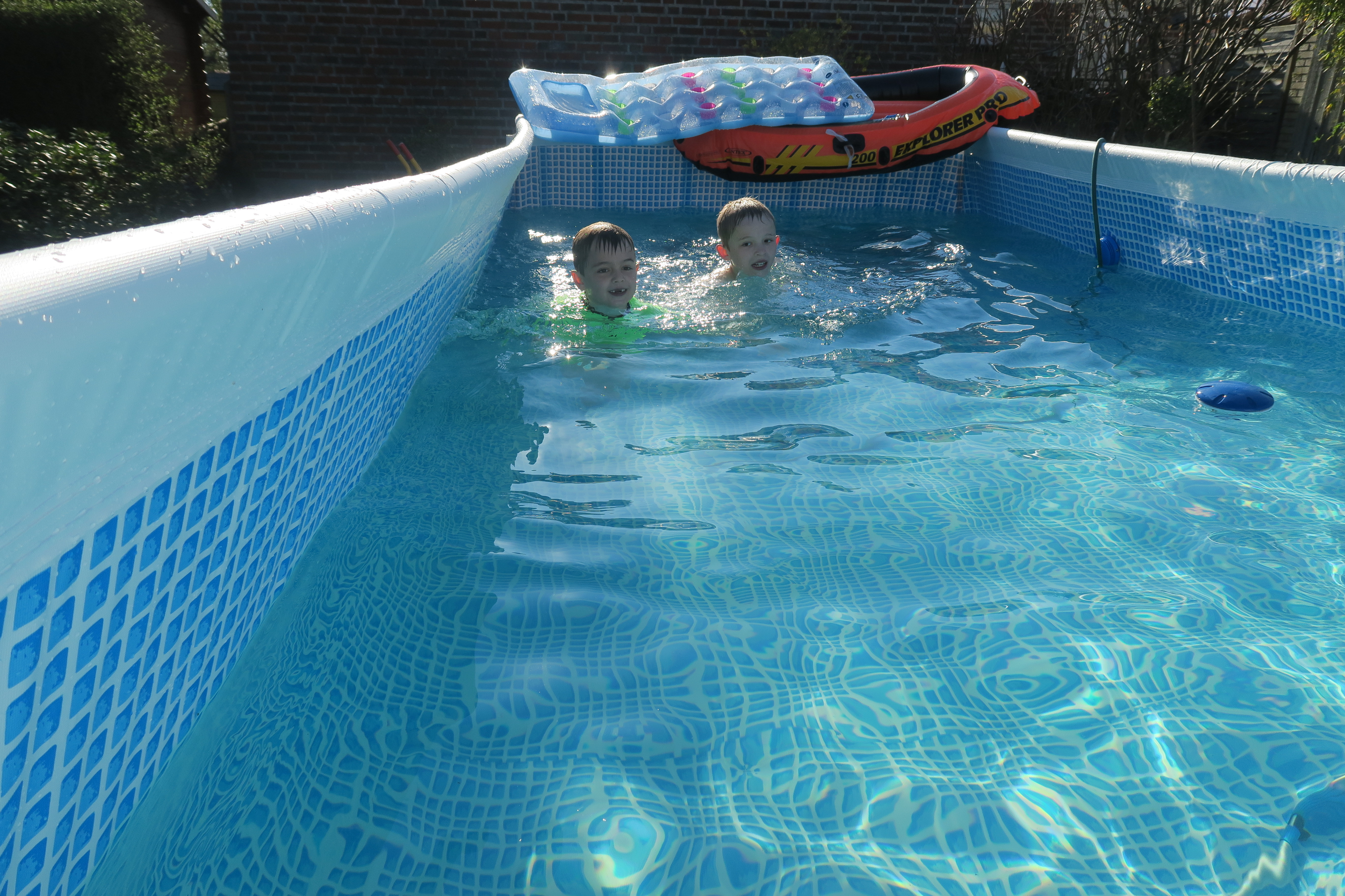 Bassinet er efterhånden halvt fuldt. Temperaturen i luften er over 20 grader og vandet er omkring 24 grader.Billedet er taget Saturday, May 7, 2016 5:05 PM.