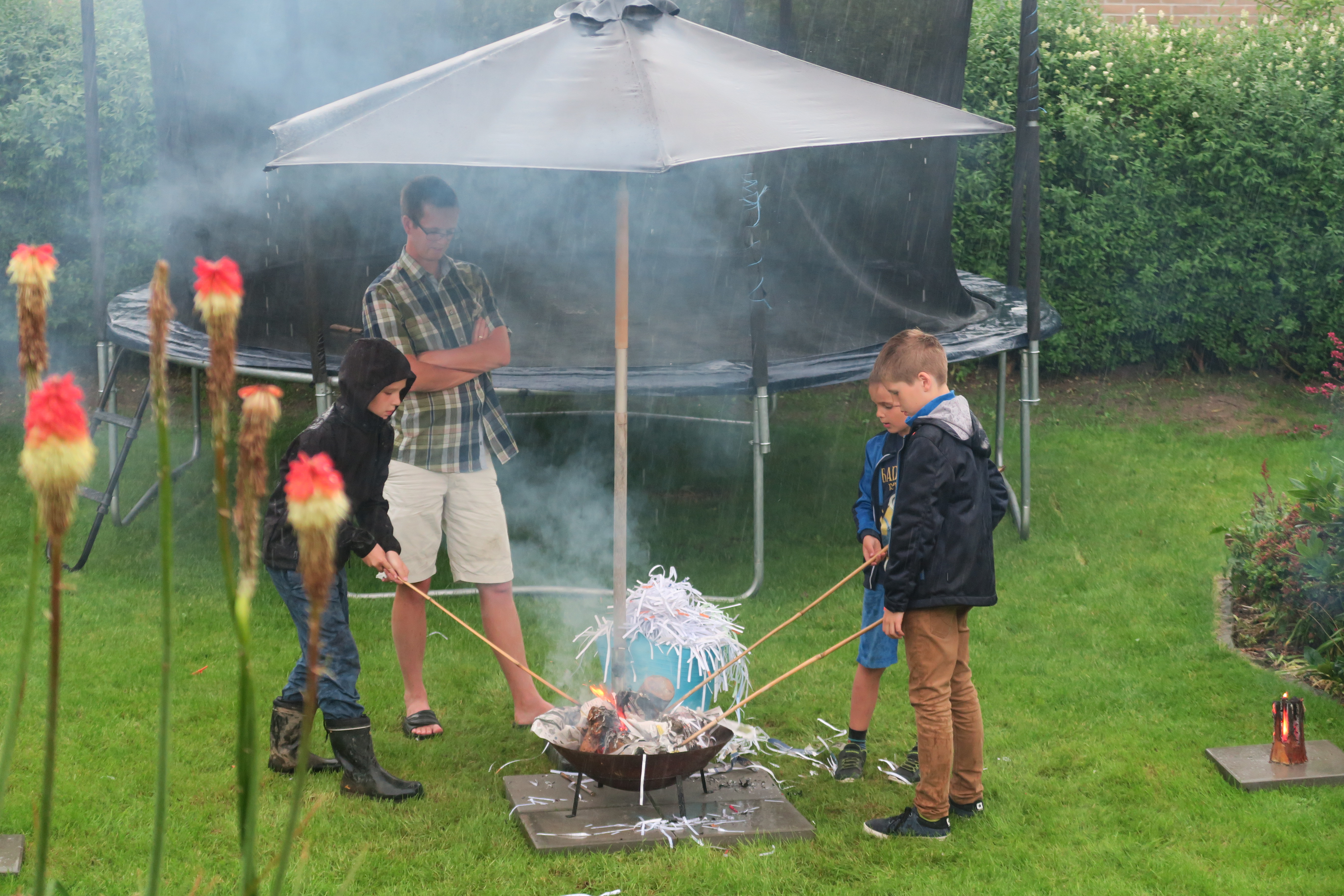 Der var visse udfordringer ved at holde gang i bålet - men det lykkedes!Billedet er taget Thursday, June 23, 2016 7:17 PM.