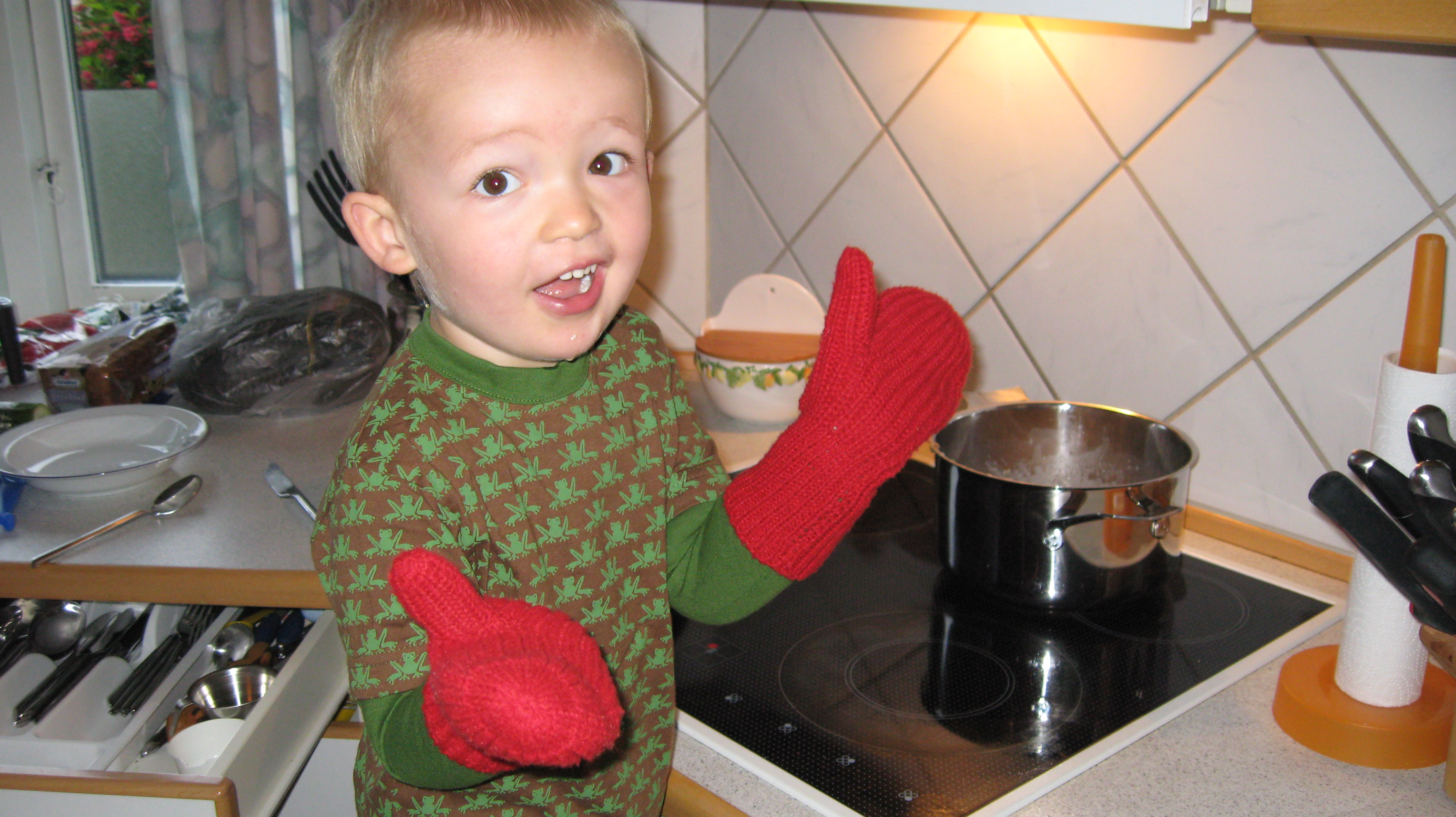 Hyttemeier i aktion i køkkenet.