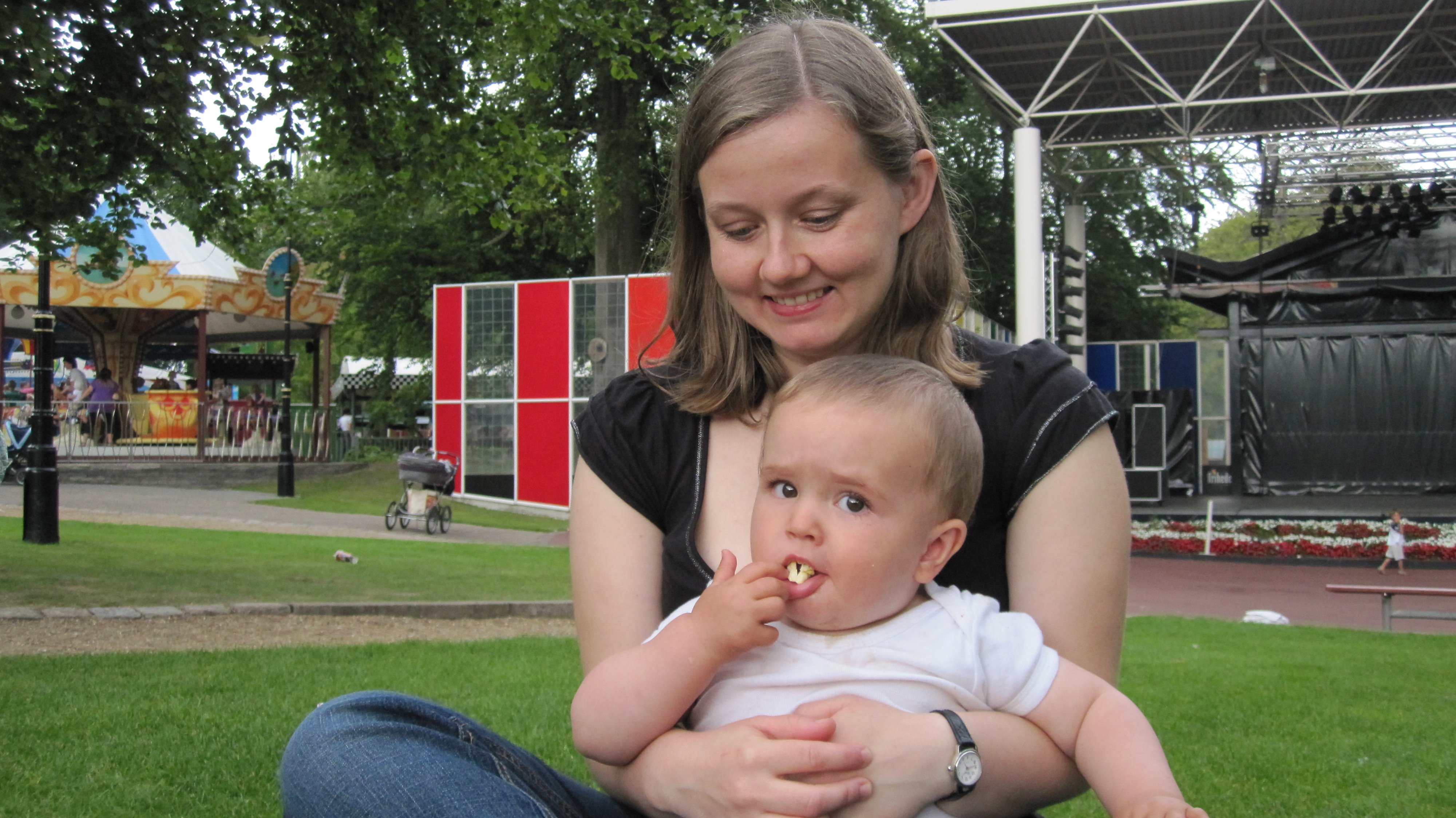 Se bare hvad hun nu har givet mig! popcorn - det gælder vist om at holde sig i nærheden af Tine.Billedet er taget Saturday, August 8, 2009 4:40 PM.