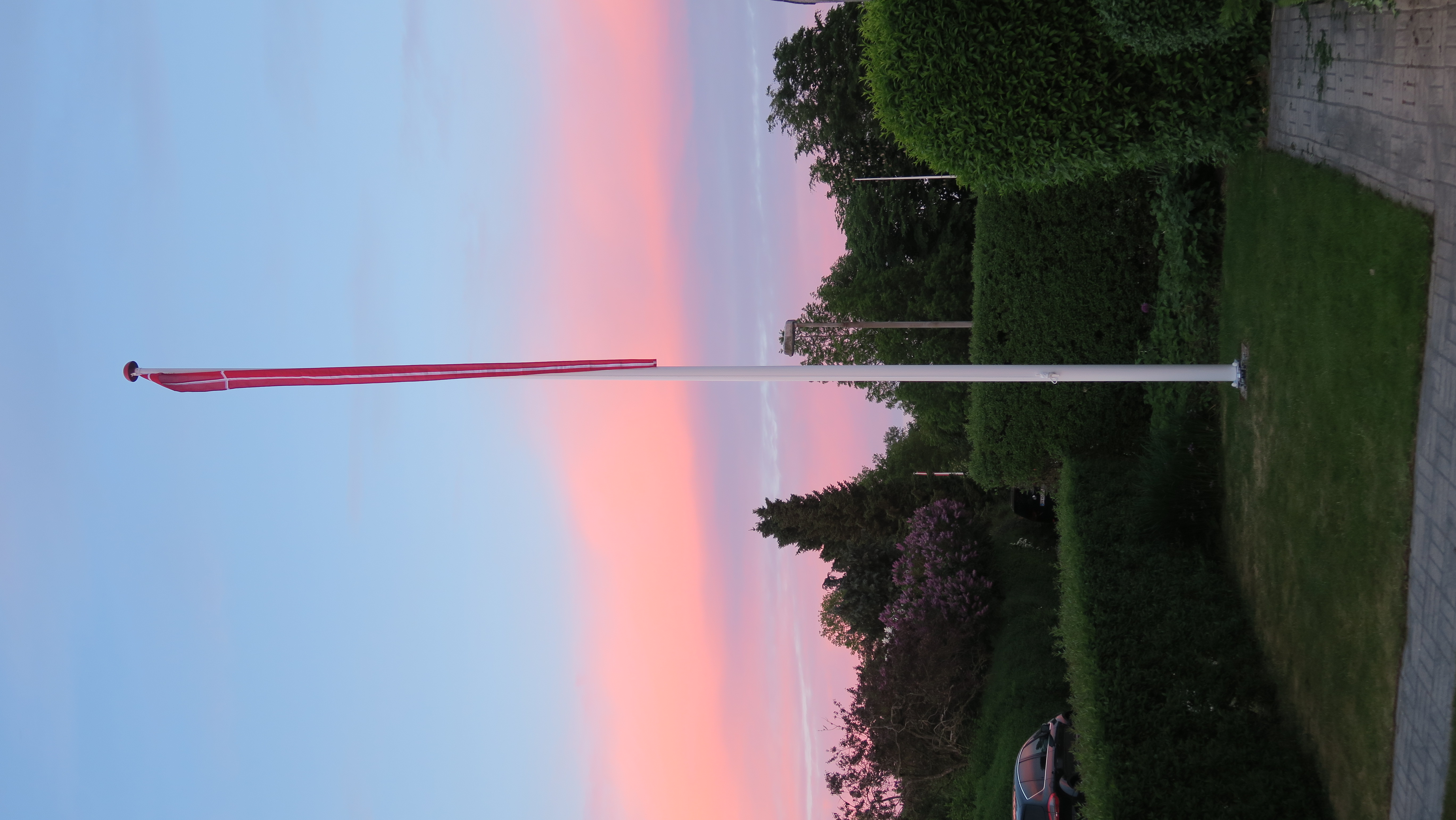Læg hovedet på skrå og nyd solnedgangen og den flotte flagstang.Billedet er taget Friday, May 25, 2018 8:52 PM.