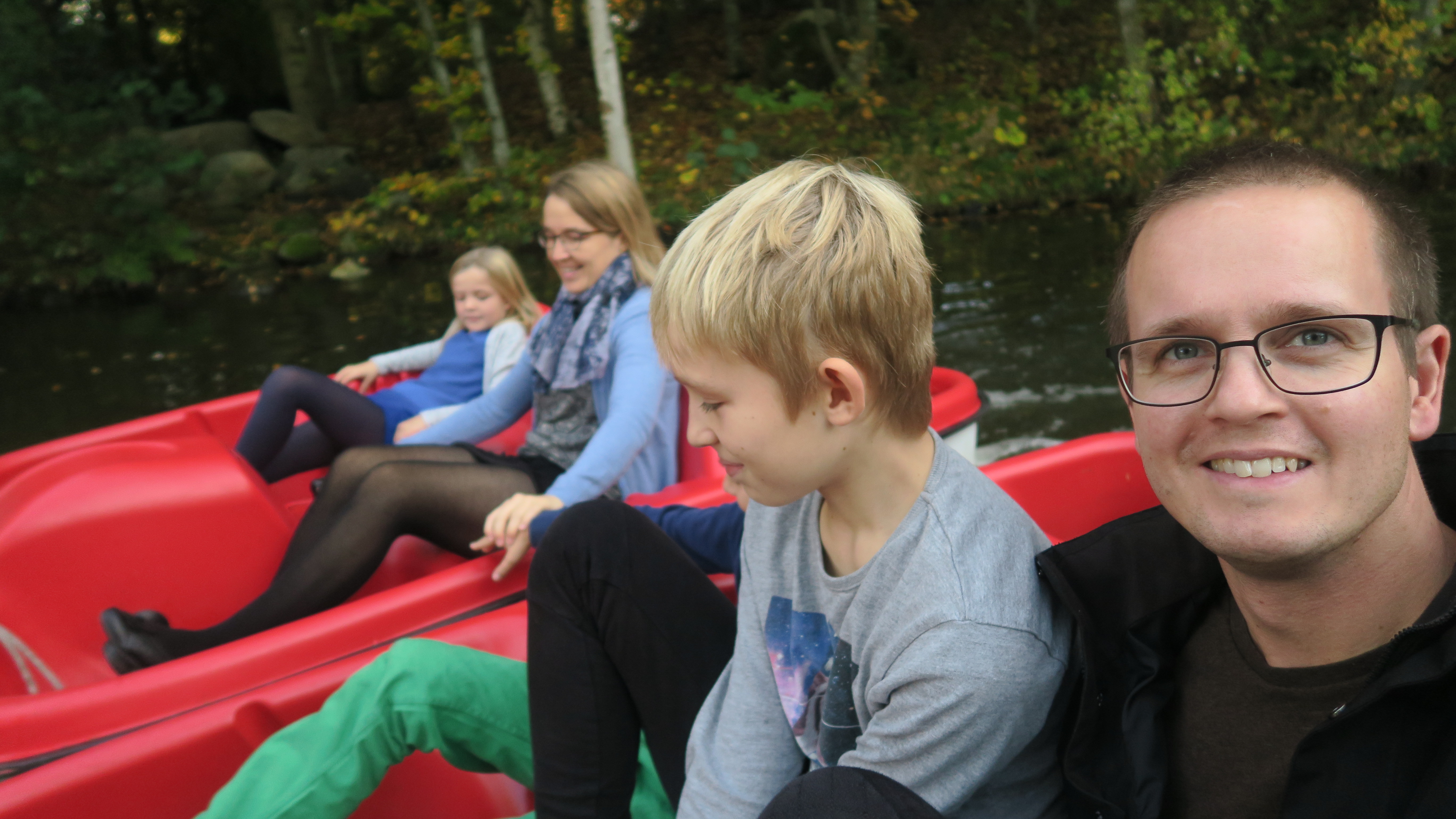 her er fødselaren med nye rulleskøjter klar til at åbne de næste gaver.Billedet er taget Saturday, October 13, 2018 3:38 PM.