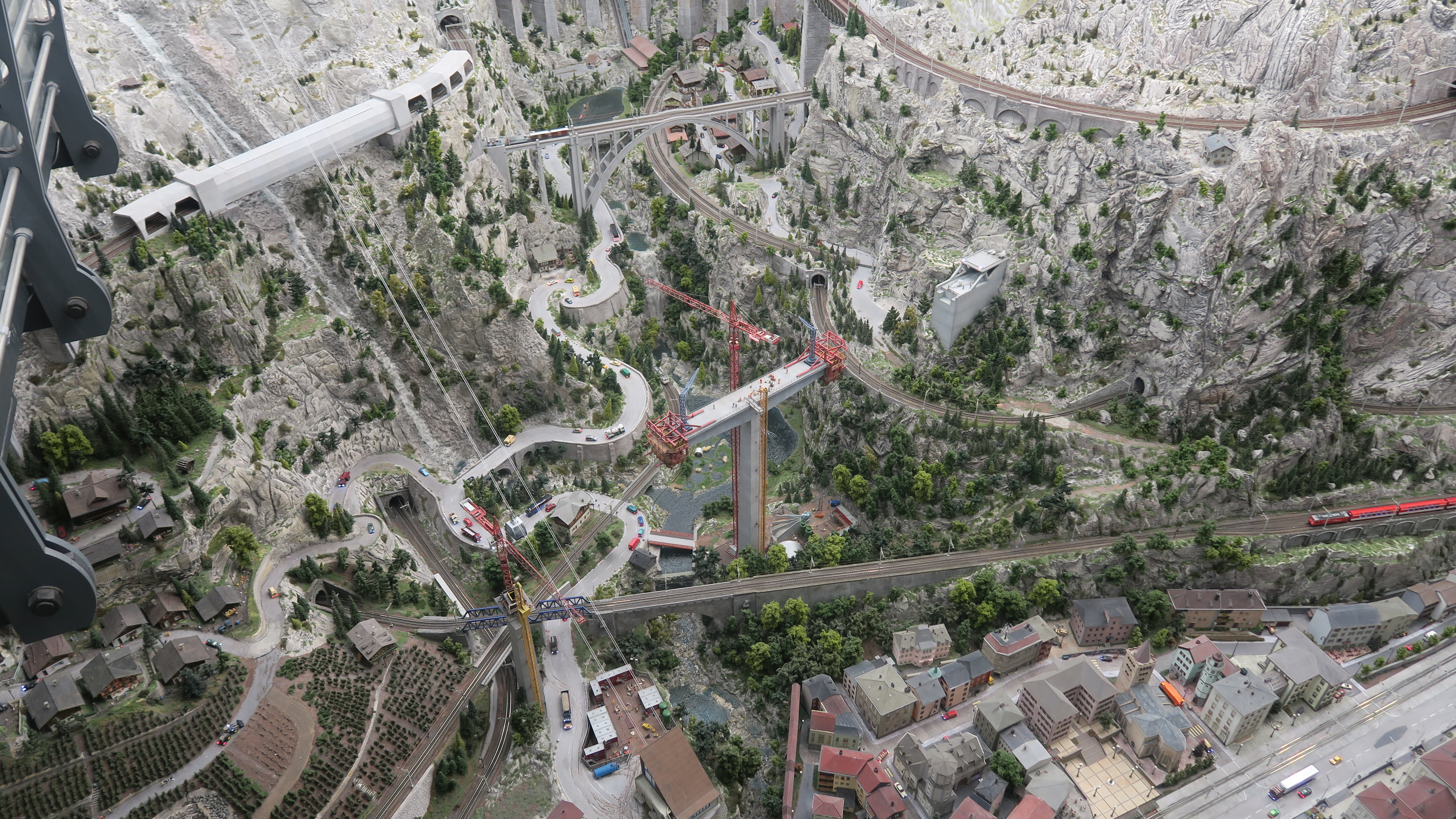 I den ene ende var modelbanen bygget op i 2 etager.