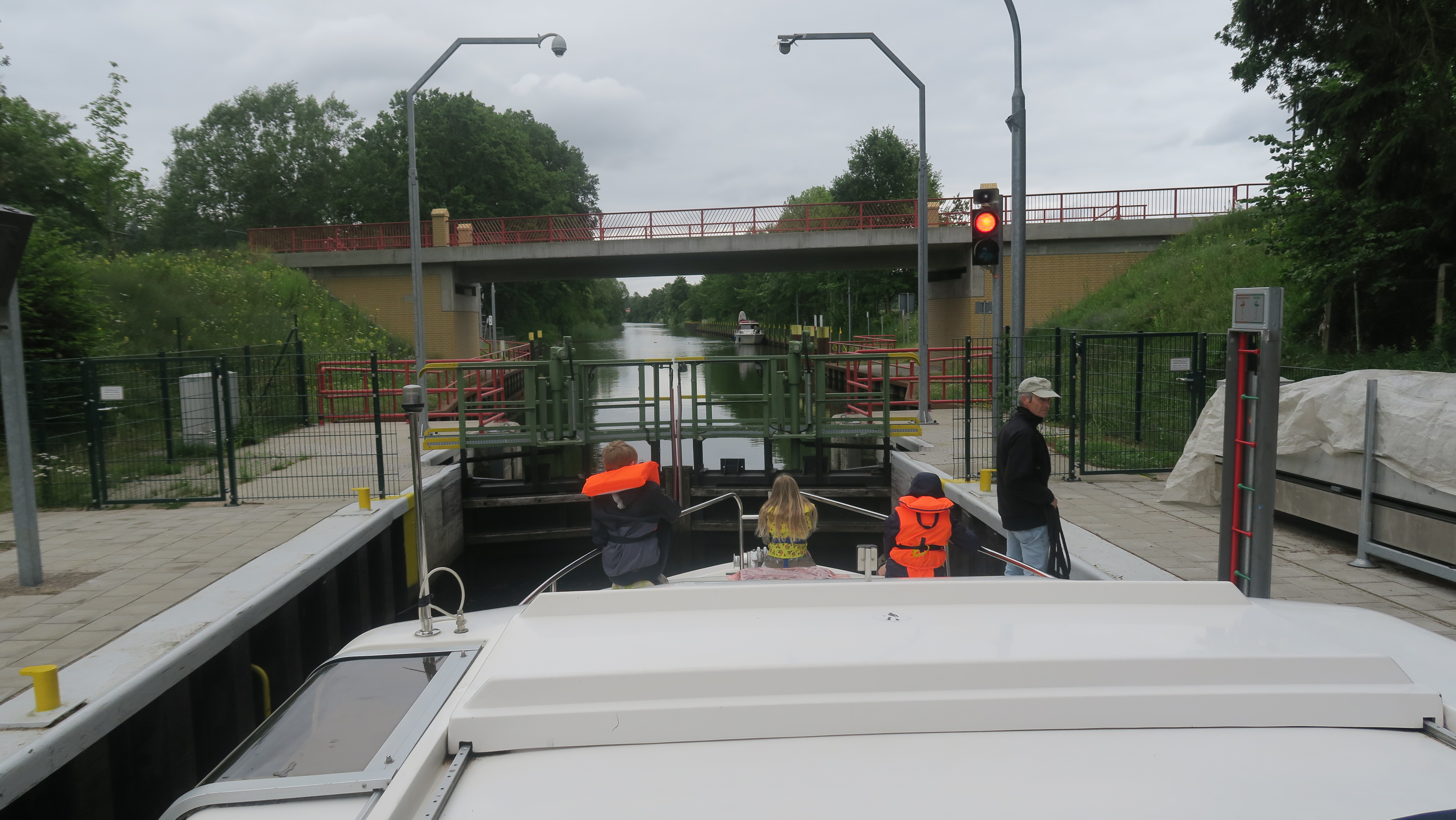 Denne var en selvbetjent sluse, hvor man skulle hive i de grønne håndtag, når man var klar til at slusen lukkede.Billedet er taget Sunday, July 7, 2019 9:31 AM.
