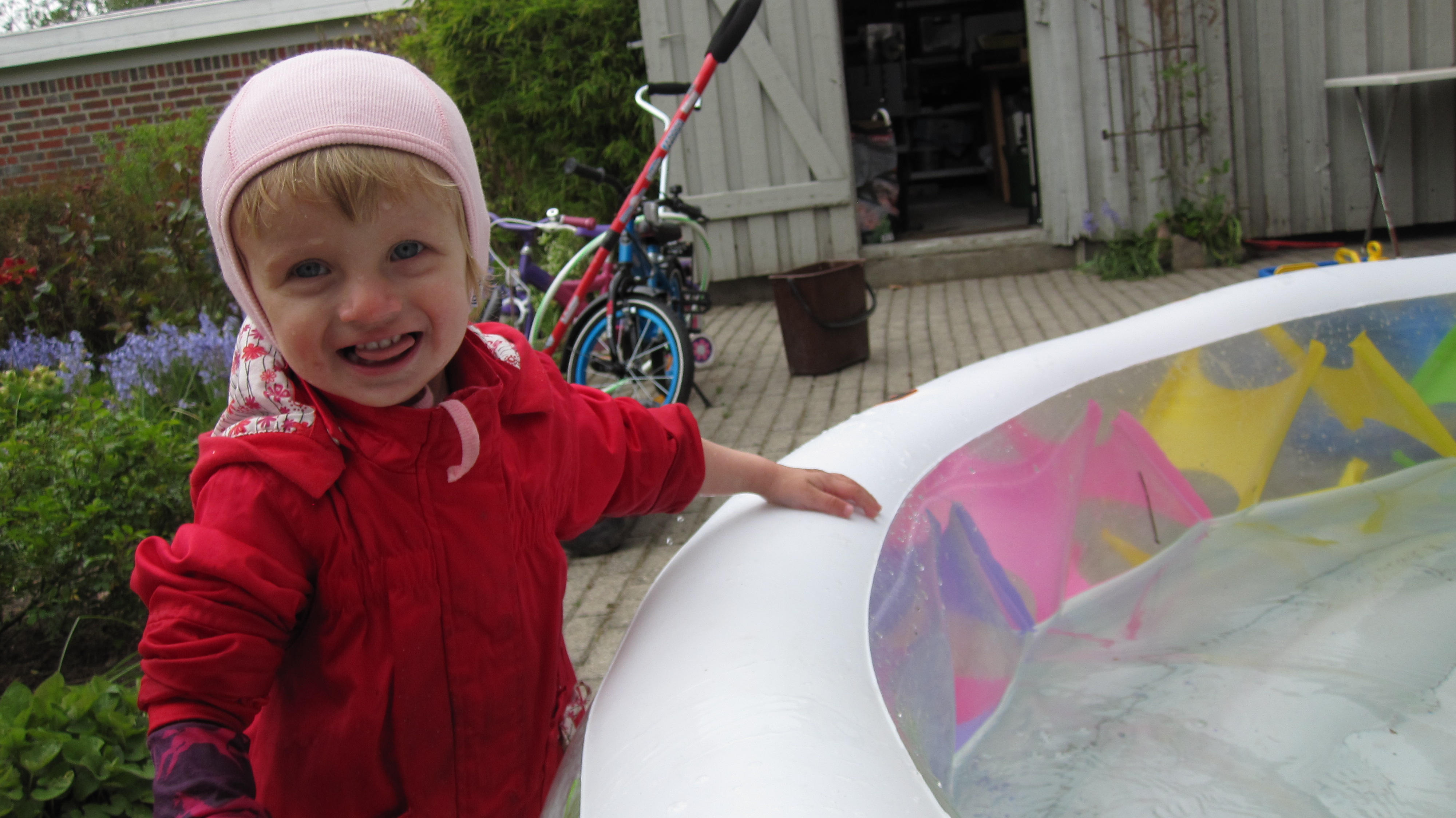 I dag er Mariuses mødregruppe på besøg. Her er Cecilie lige ved at teste vandtemperaturen.Billedet er taget Friday, September 10, 2010 2:22 PM.