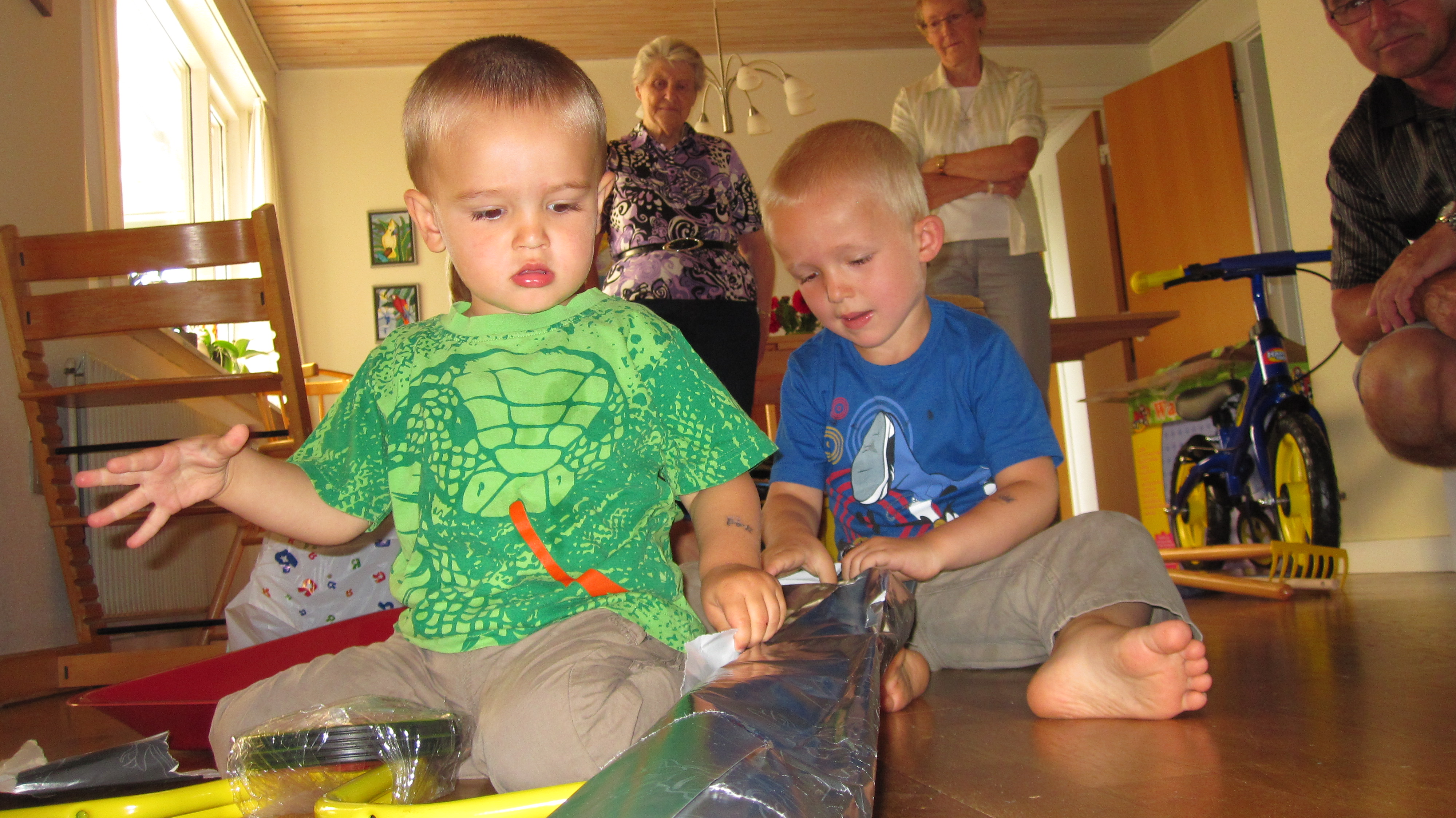 Christian ville heldigvis gerne hjælpe mig med at pakke gaverne ud.Billedet er taget Friday, August 13, 2010 3:02 PM.