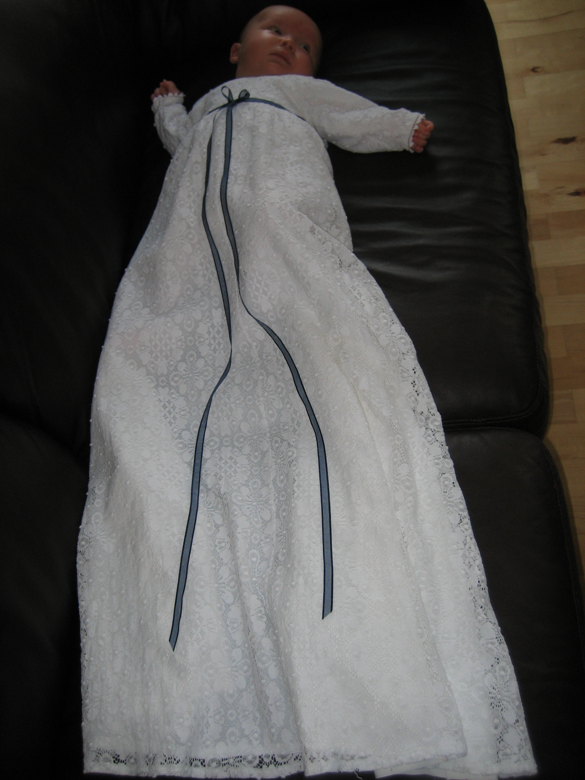 Mor ville lige have et ordentligt billed af mig i dåbskjolen, så jeg blev nødt til at tage den på igen