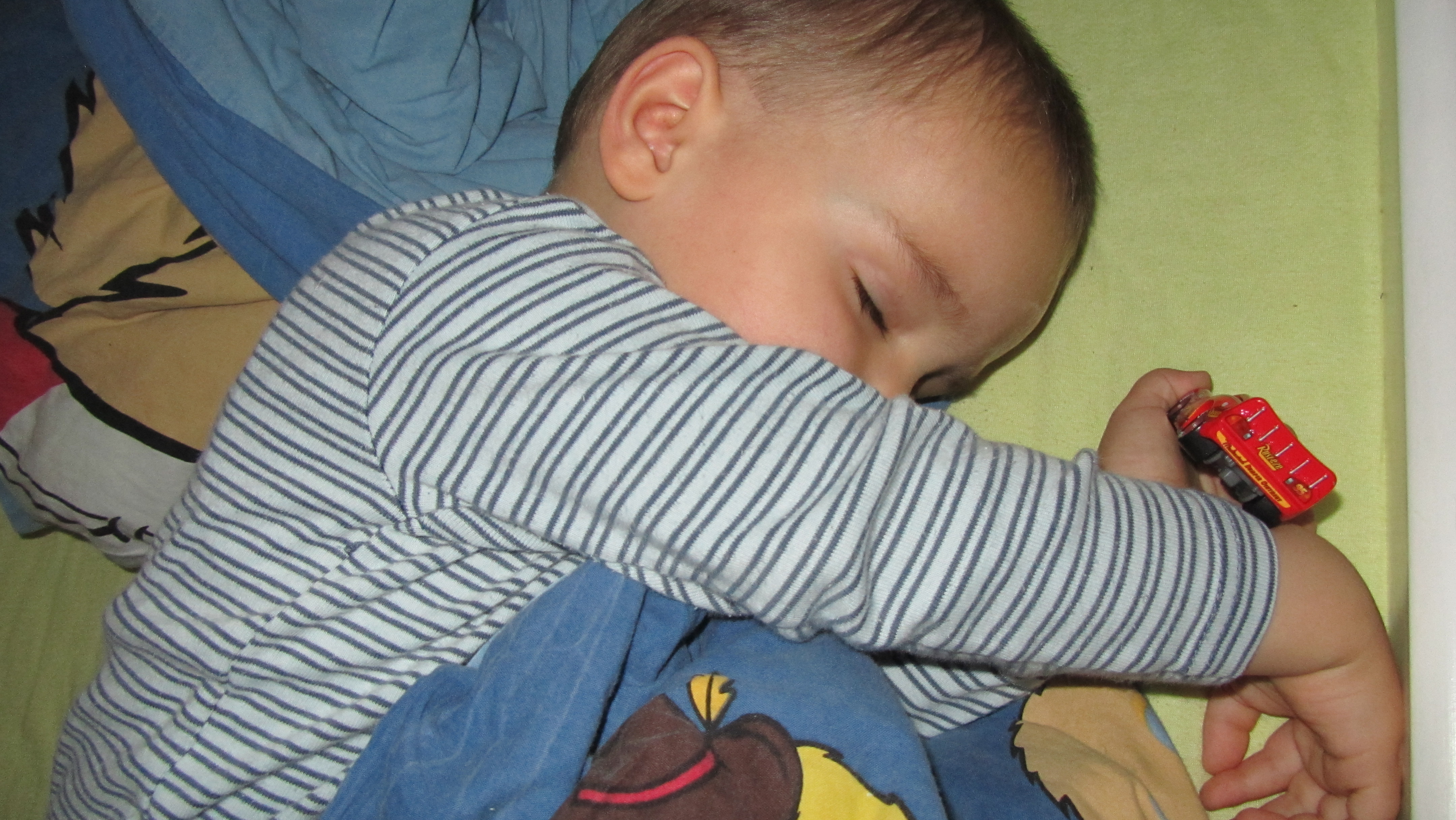 Så har jeg fået min egen Lynet McQueen bil og den passer jeg godt på - også når jeg sover!Billedet er taget Monday, November 1, 2010 11:23 PM.