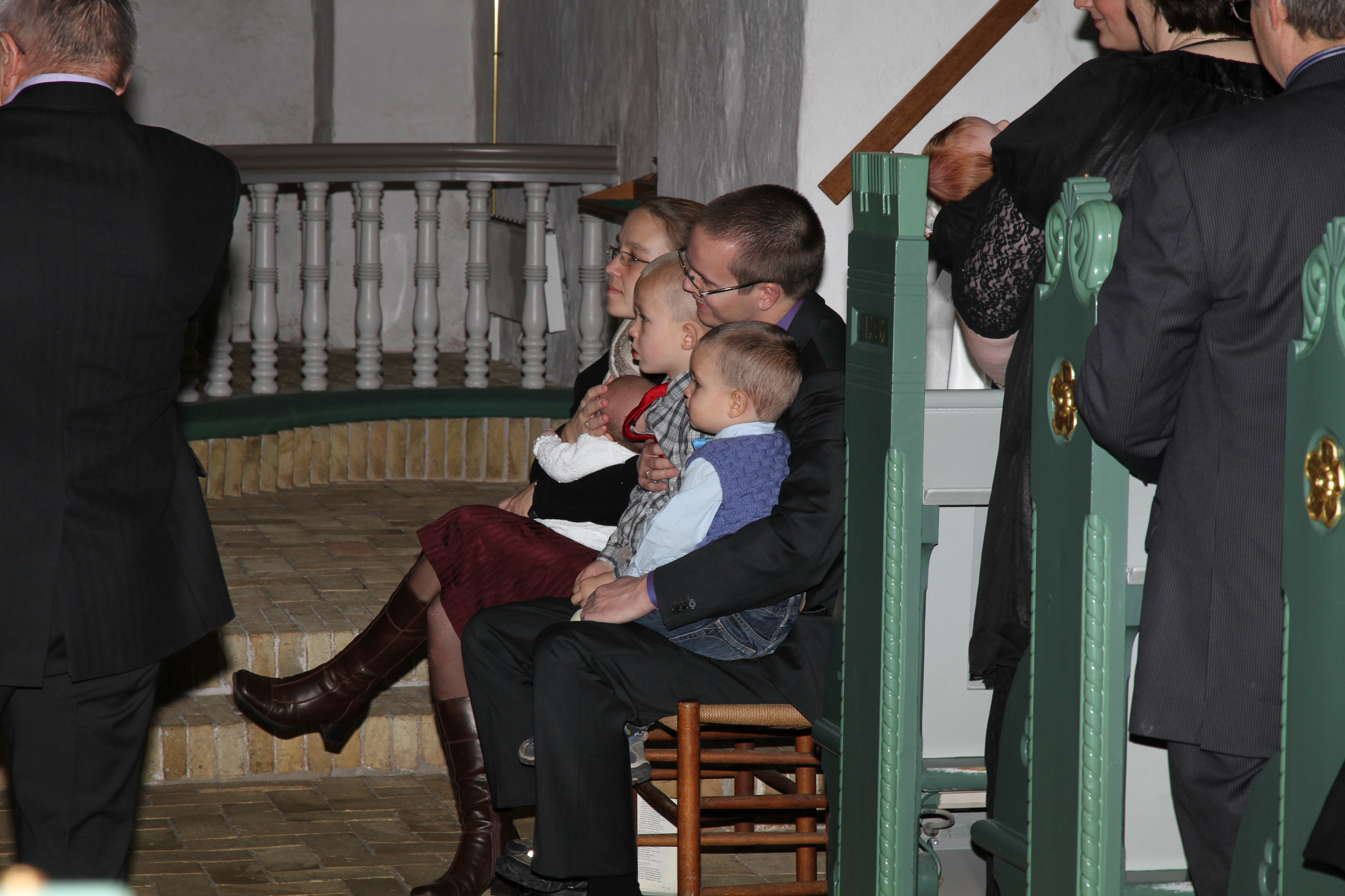 Her sidder vi lige og holder øje med hvad der sker, når man skal døbes.Billedet er taget Sunday, November 21, 2010 11:20 AM.