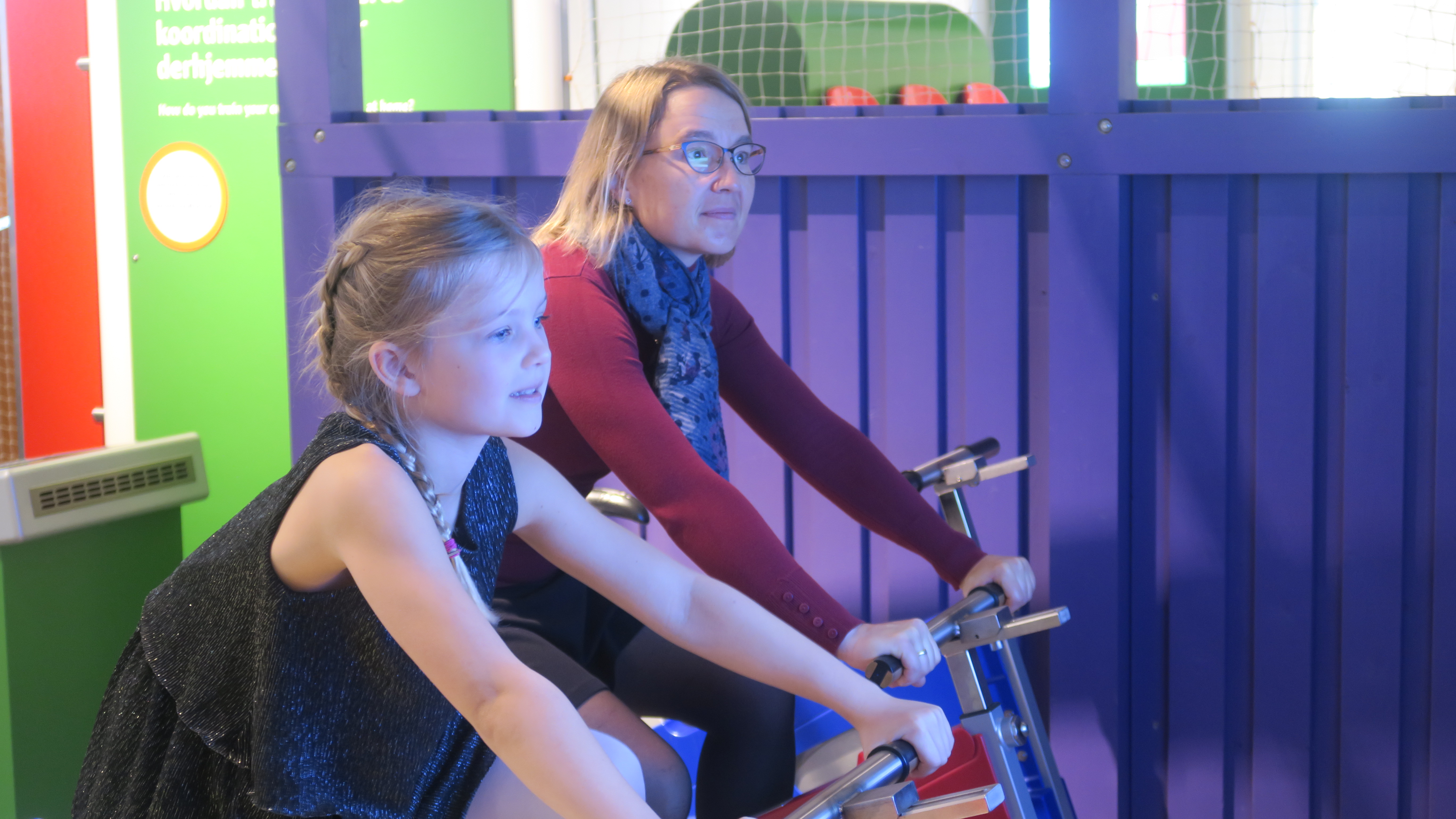Laura og Mona er på hold sammen. De skal cykle en hurtig tur på kondicykler og efterfølgende se hvis plus der hurtigst falder til ro.Billedet er taget Sunday, October 13, 2019 12:04 PM.