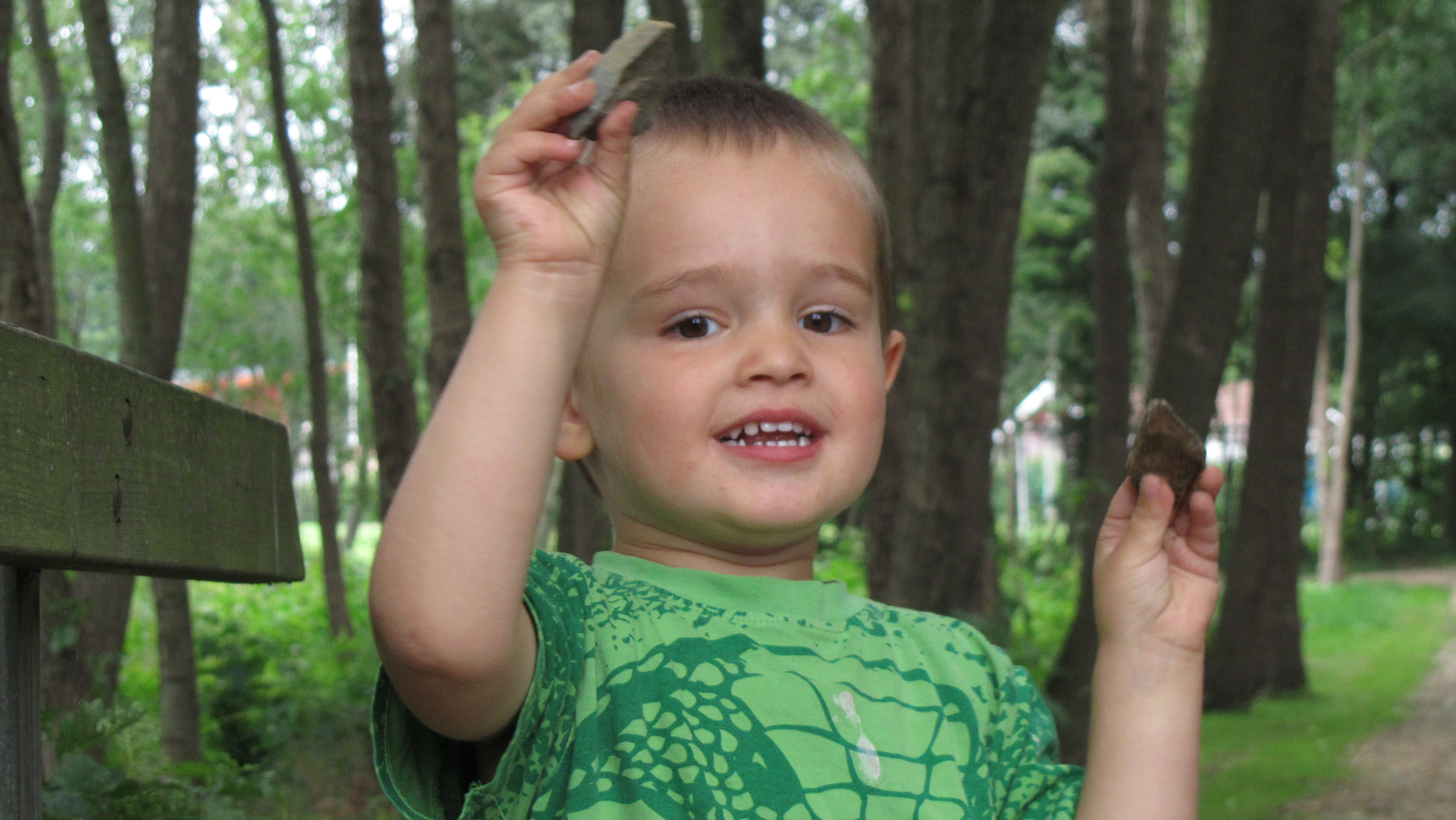 Lidt længere væk smed Marius denne sten i vandet.