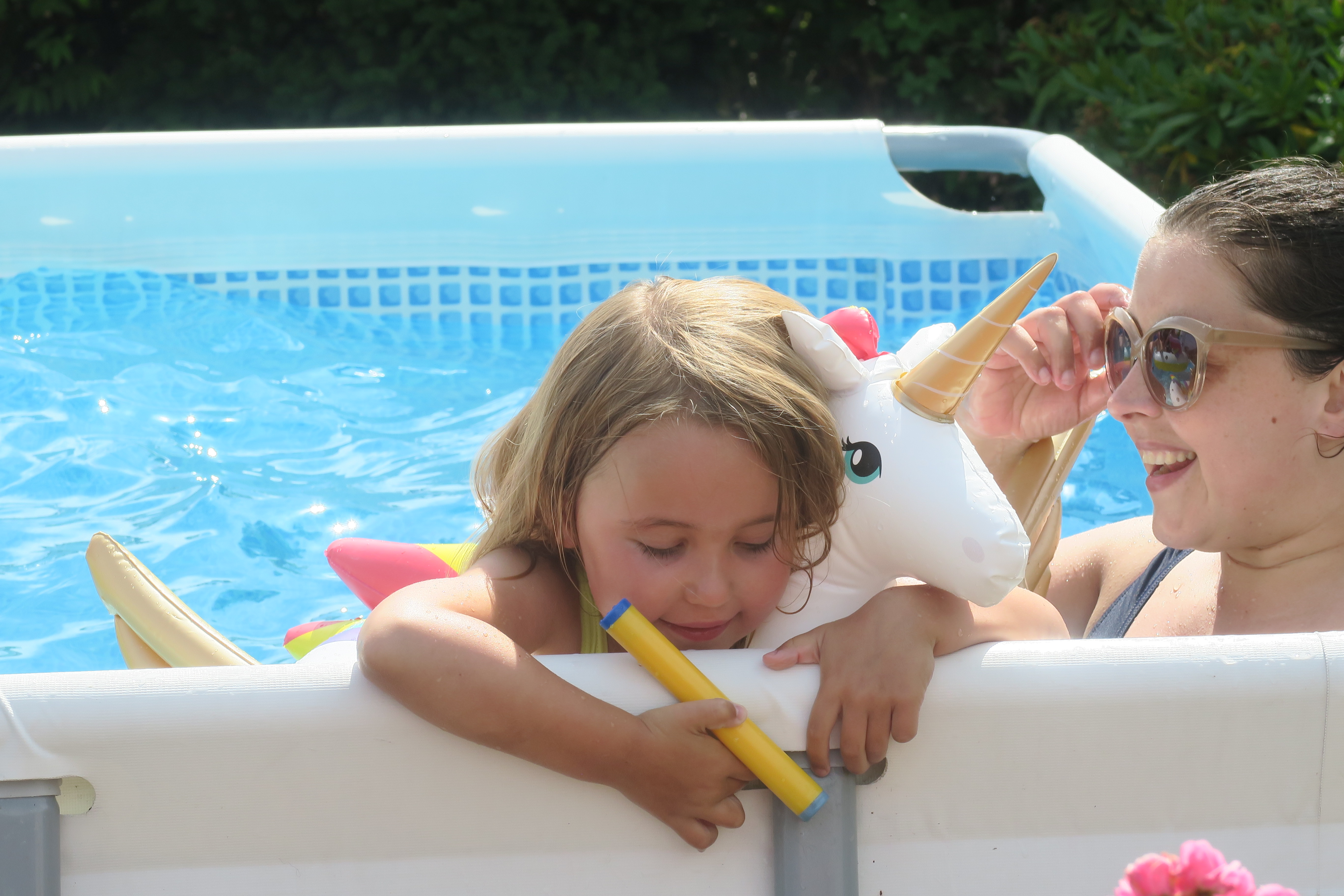 Mens drengene forsøgte at få Claus af den store enhjørning, passede Nanna godt på sin enhjørning.Billedet er taget Saturday, August 8, 2020 2:08 PM.