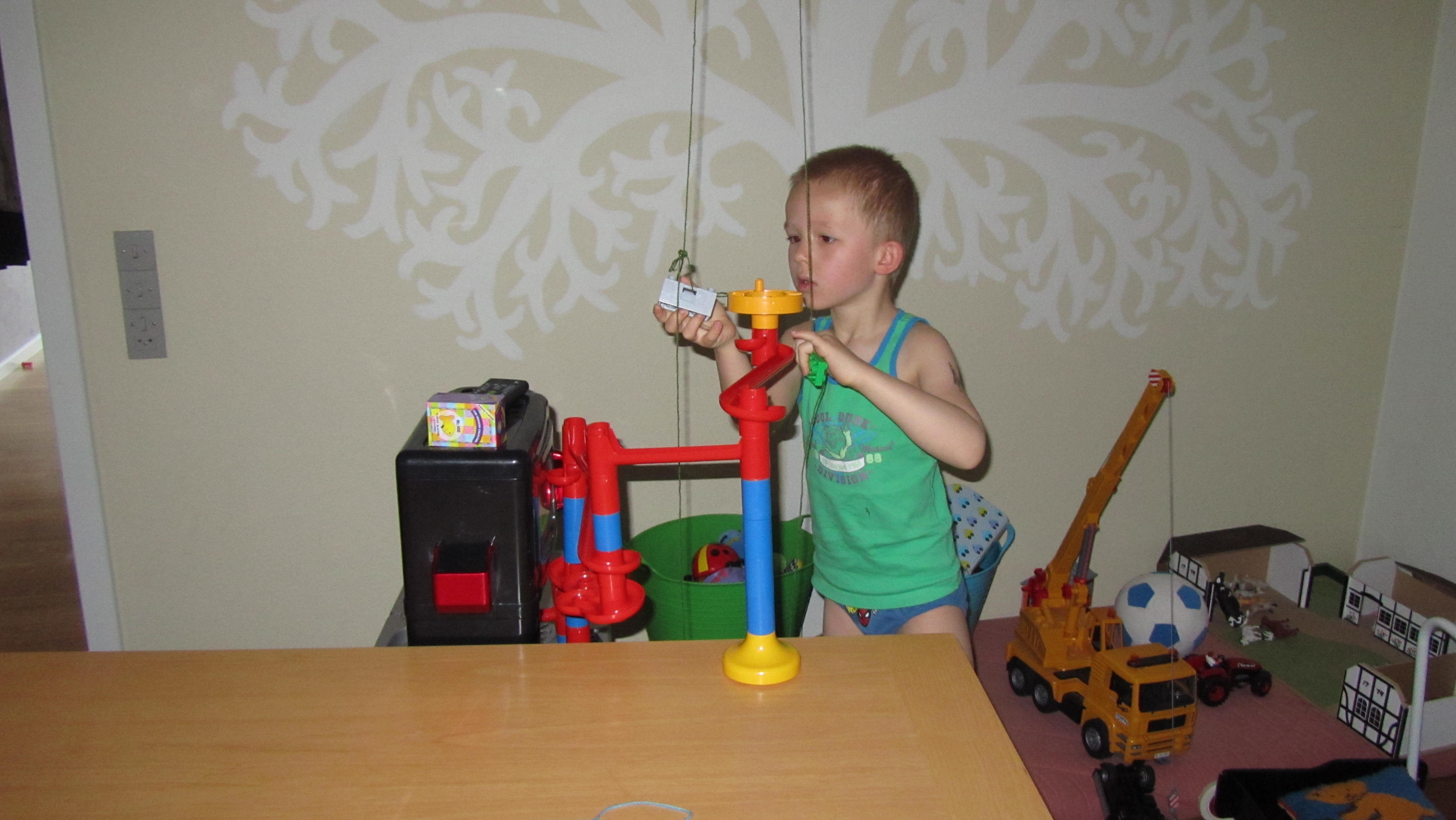 Så skal kuglen lige hejses op til kugelebanen.