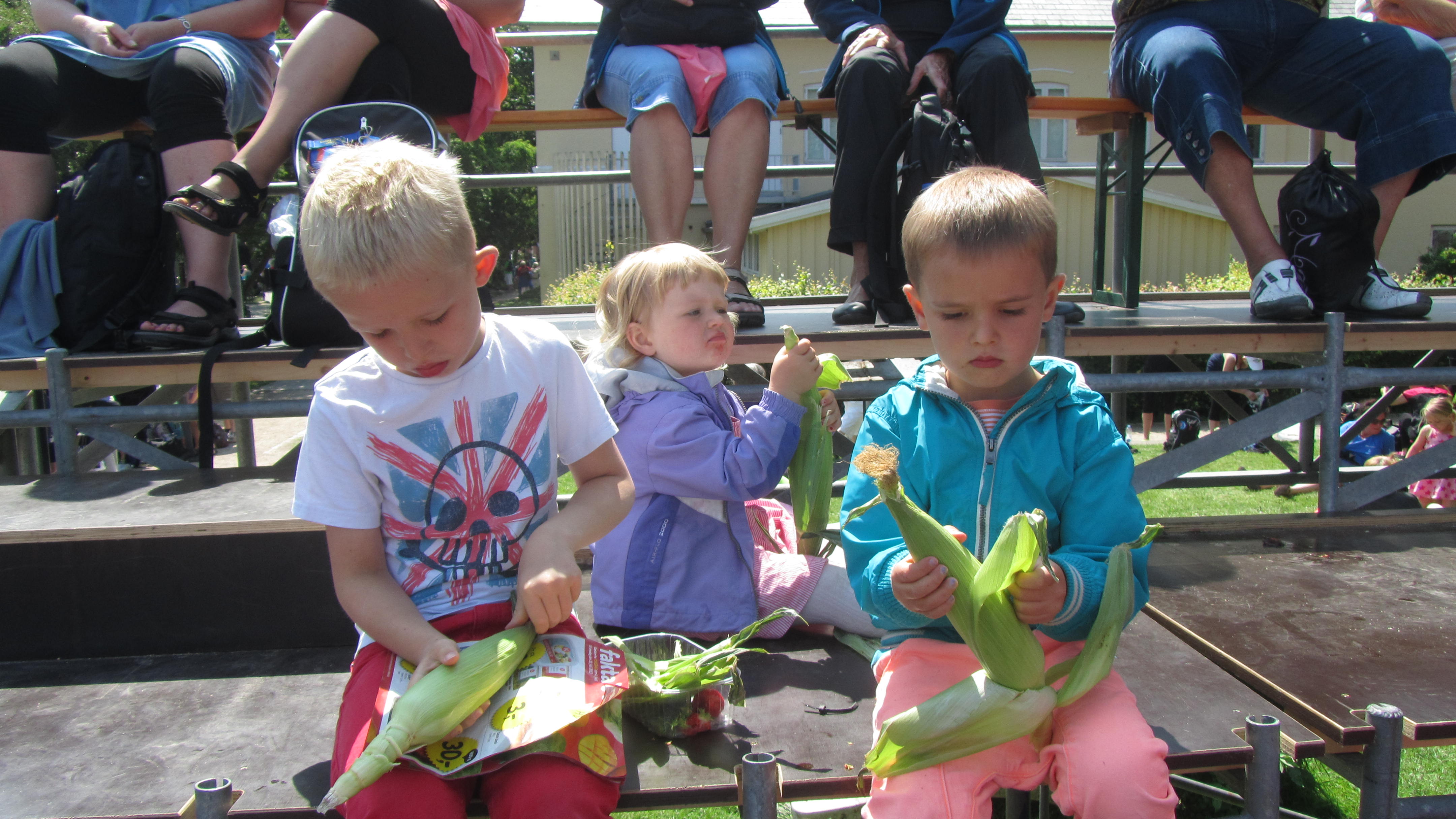 Så er det i dag mor skal lave gymasntik. Mens vi venter spiser vi majs.Billedet er taget Friday, July 5, 2013 1:28 PM.
